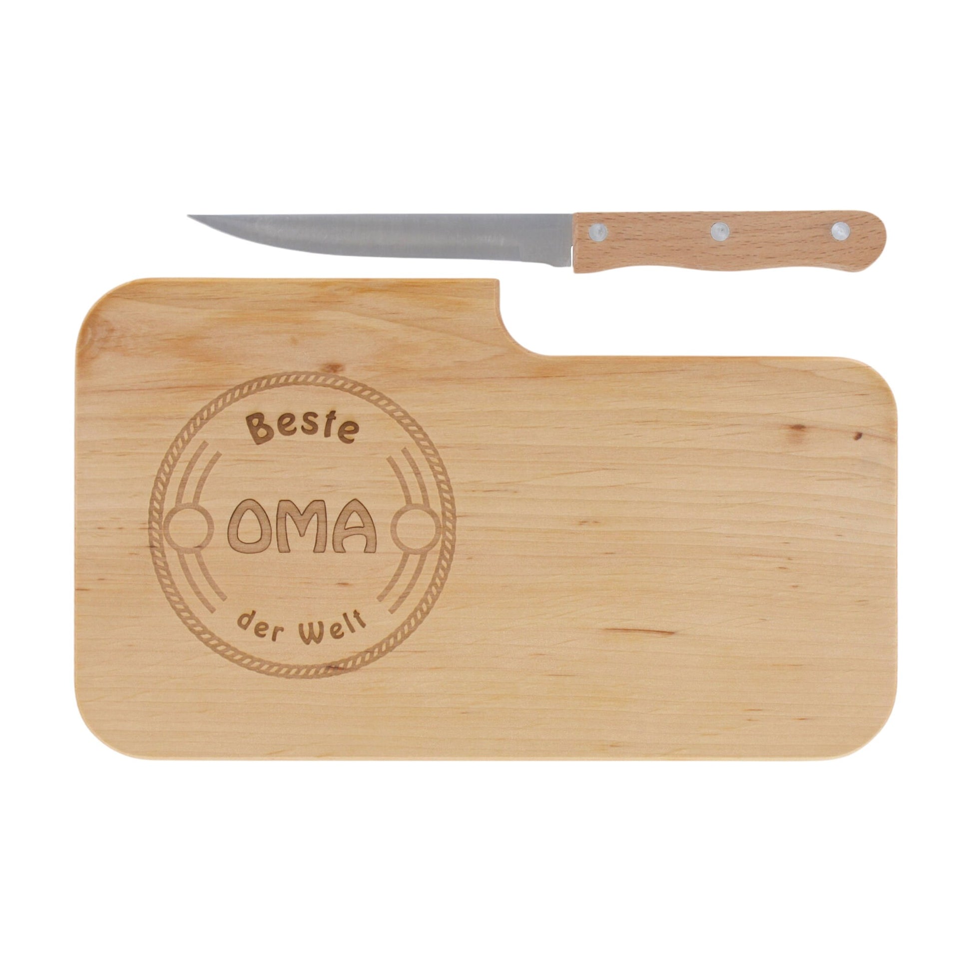 Messerbrett mit Gravur Beste Oma der Welt, Geschenk Frauen, Schneidbrett Holz, Geschenkidee für Oma, Brotzeitbrett mit Messer, Jausenbrett