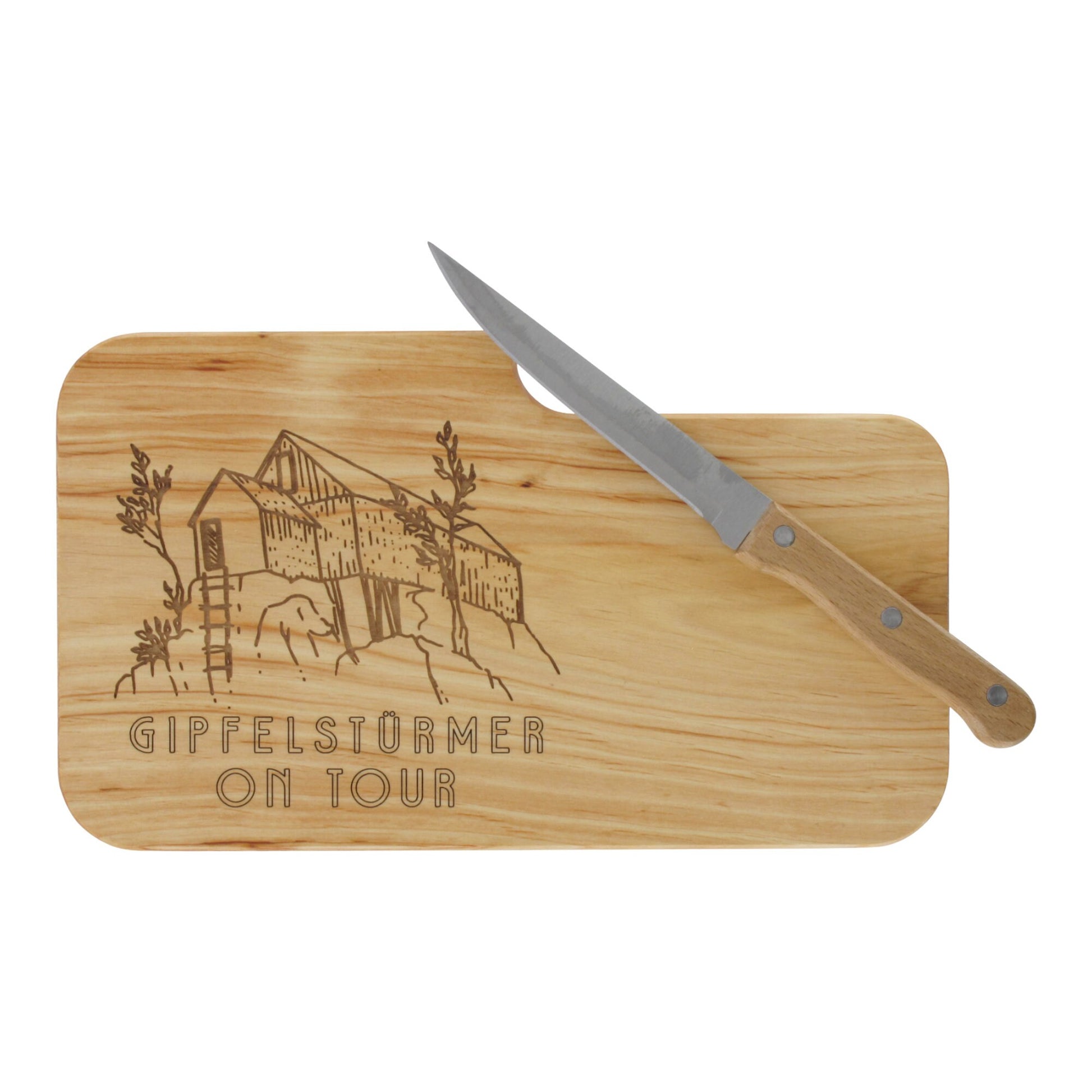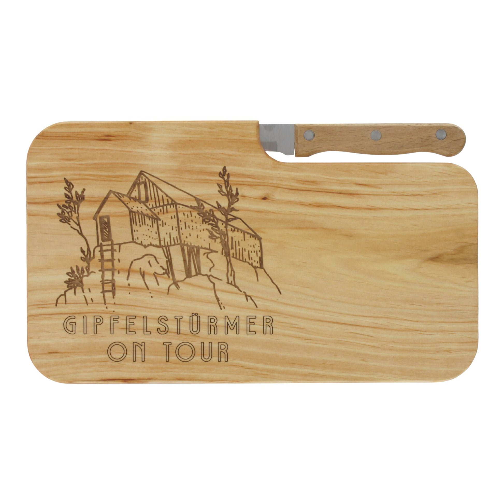 Messerbrett mit Gravur Gipfelstürmer on Tour, Geschenk Wanderer, Schneidbrett Wandern, Brotzeitbrett mit Messer, Jausenbrett