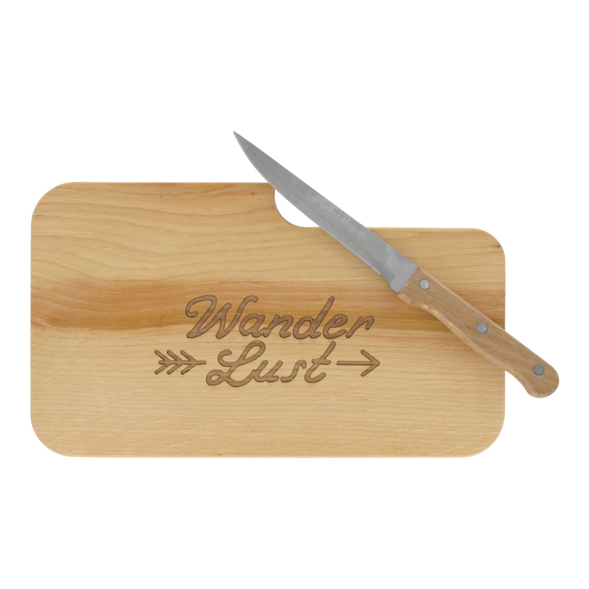 Messerbrett mit Gravur Wanderlust, Geschenk Wanderer, Schneidbrett Wandern, Geschenkidee Camper, Brotzeitbrett mit Messer, Jausenbrett